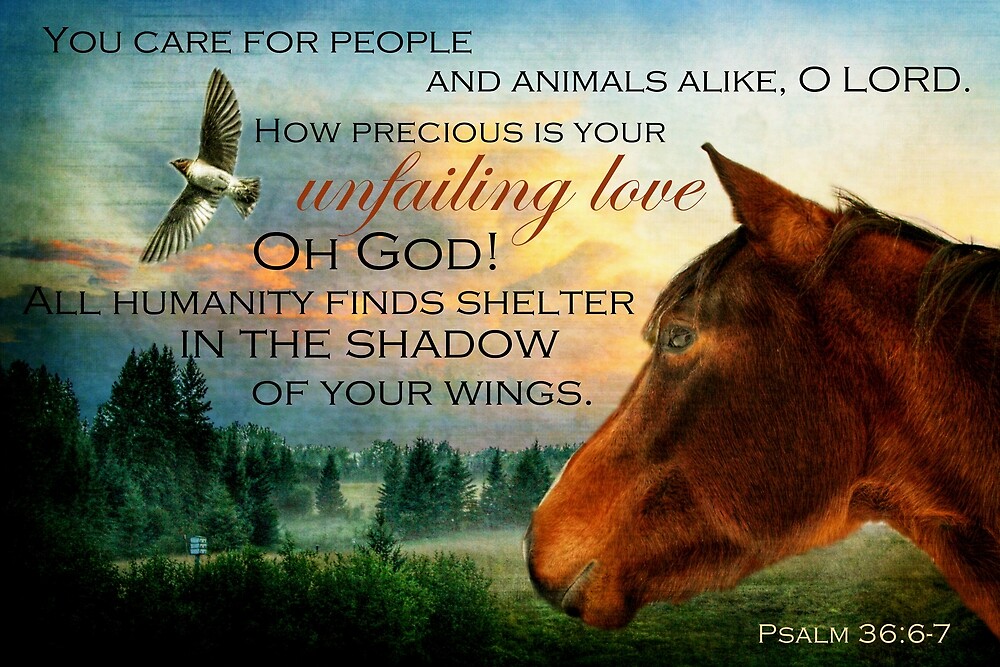 “Your unfailing love, O Lord, is as vast as the heavens; your faithfulness reaches beyond the clouds. Your righteousness is like the mighty mountains, your justice like the ocean depths. You care for people and animals alike; how precious is your unfailing love! All humanity finds shelter in the shadow of your wings.” vv 5-7.